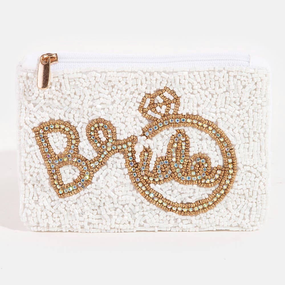 This coin purse brings a unique bride and ring themed seed beaded style. Discover the perfect balance of functionality and fashion.