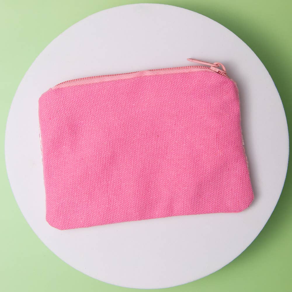 Sweeten the season with this festive pink candy cane coin bag, hand-beaded with shimmering crystal seed beads for a playful holiday twist. Compact and lightweight, this cheerful pouch features a secure zipper closure and is perfect for storing coins, cash, cards, or small treasures. A standout holiday accessory with handmade charm and functional flair.
