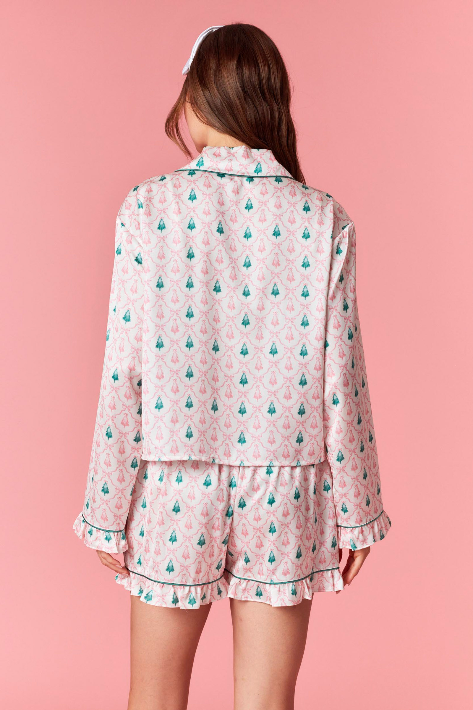 Christmas Tree Satin Pajama Set with Velvet Bows