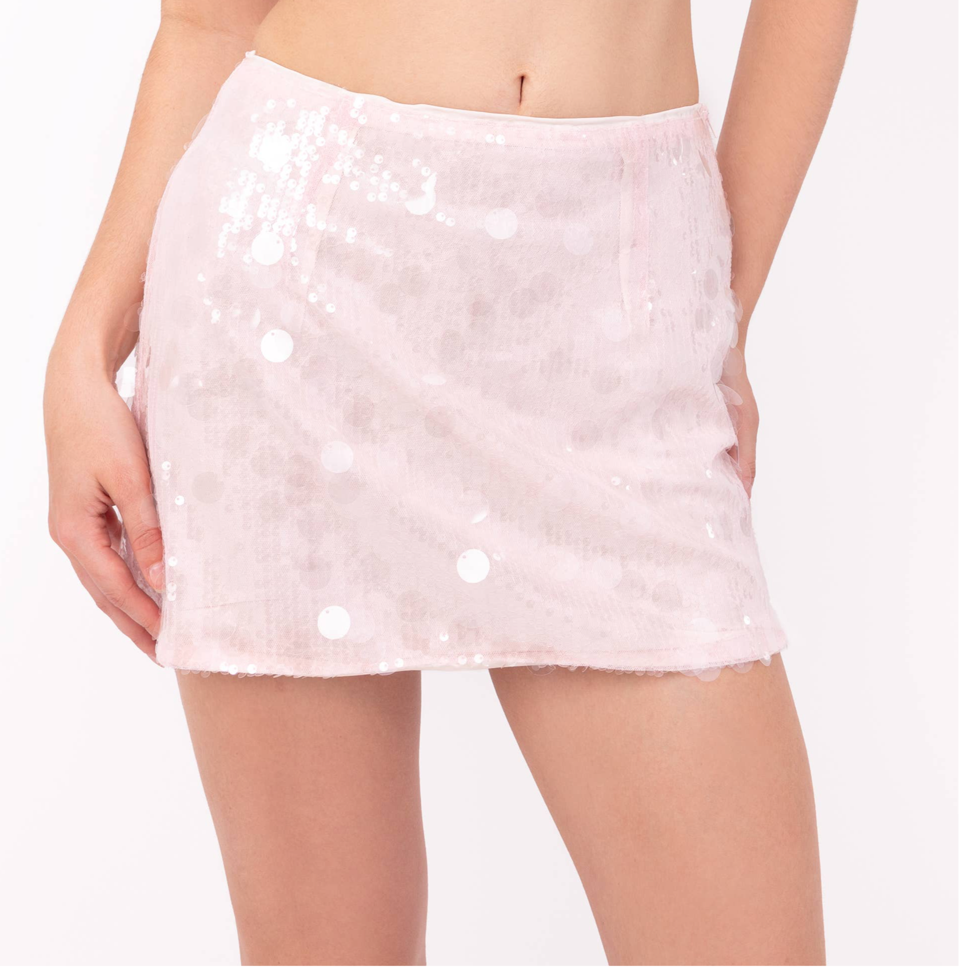 A stunning mini length skirt in a high shine disc sequin with a rear zip fastening. This high waisted skirt is the perfect all season skirt.. Wear with a camisole and heels for a festive evening look and wear with a white vest and tan leather flats for the ultimate cool beach to bar summer look!