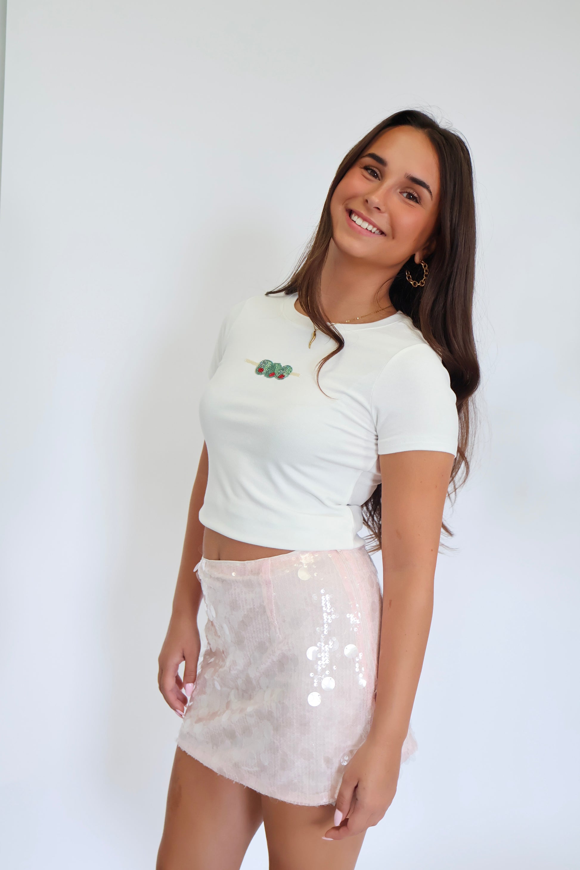Olive beaded Tee π« - ribbed knit fabric - beaded olive short sleeve
