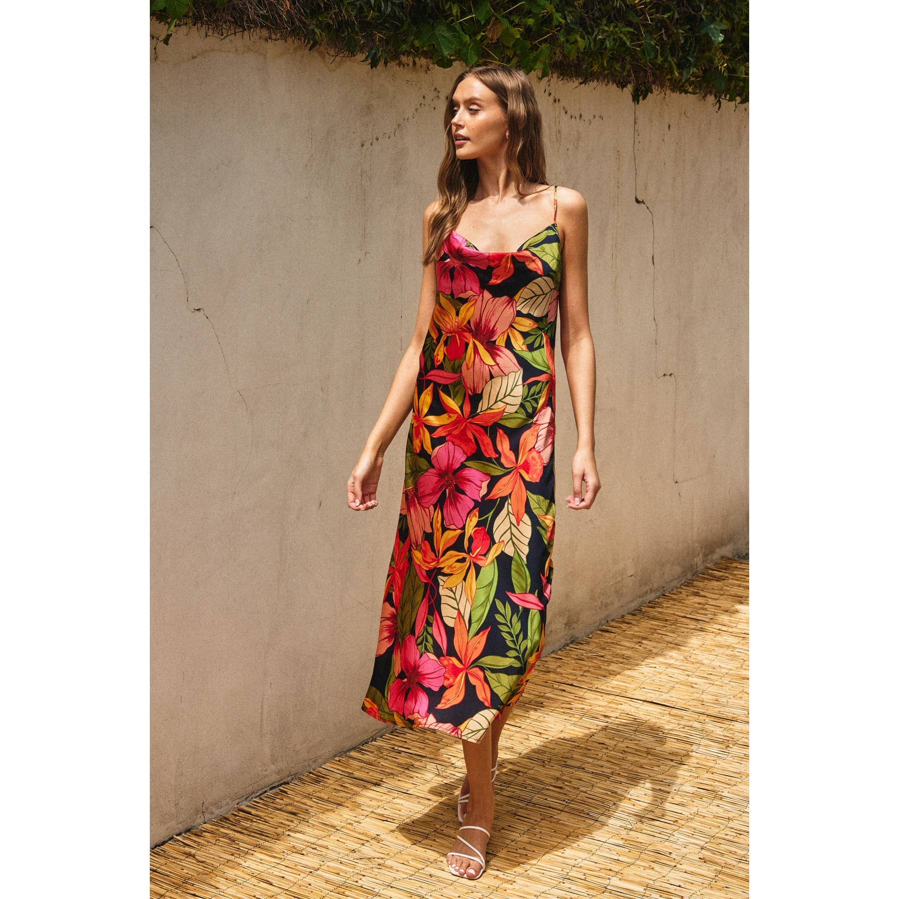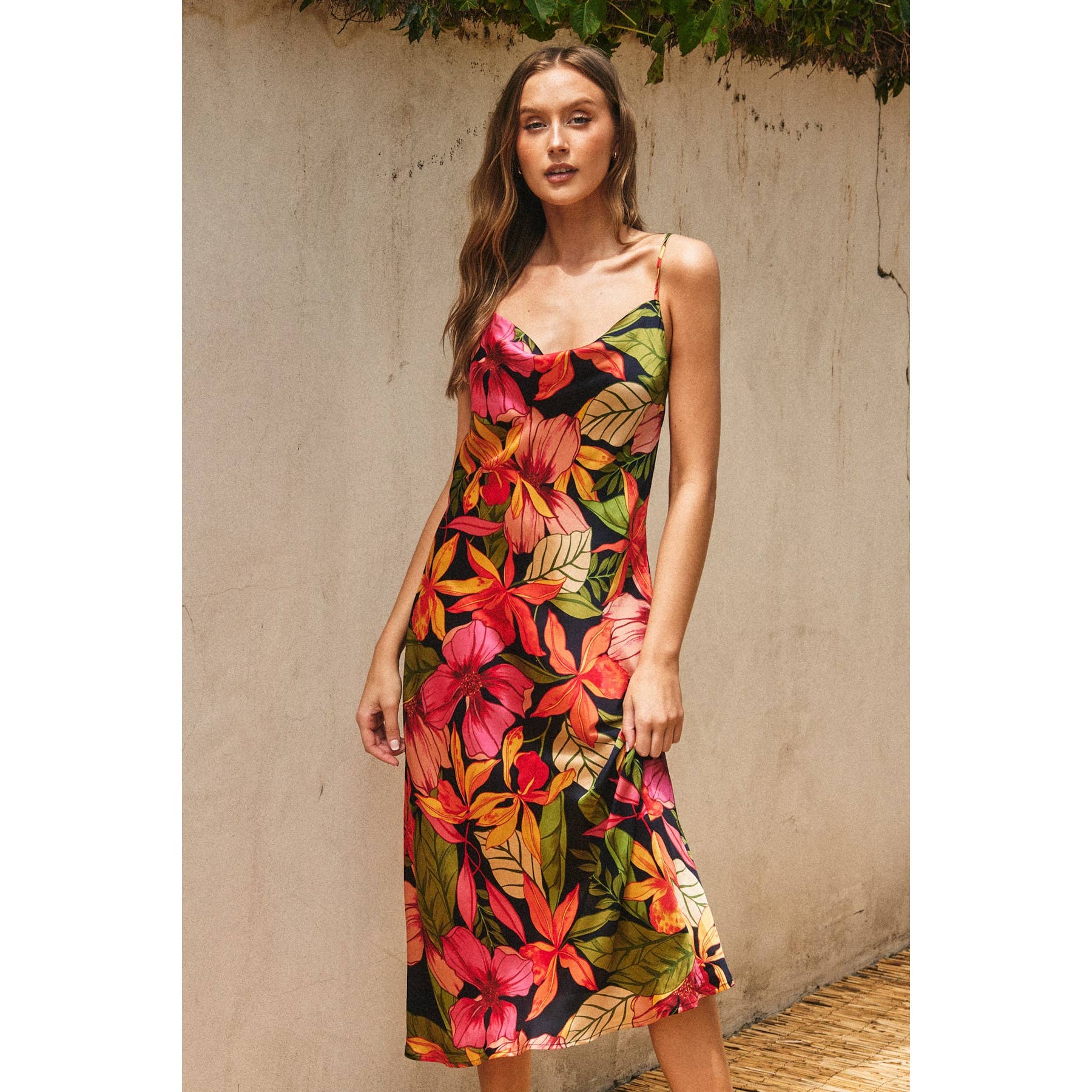 Aloha Cowl Neck Midi Slip Dress