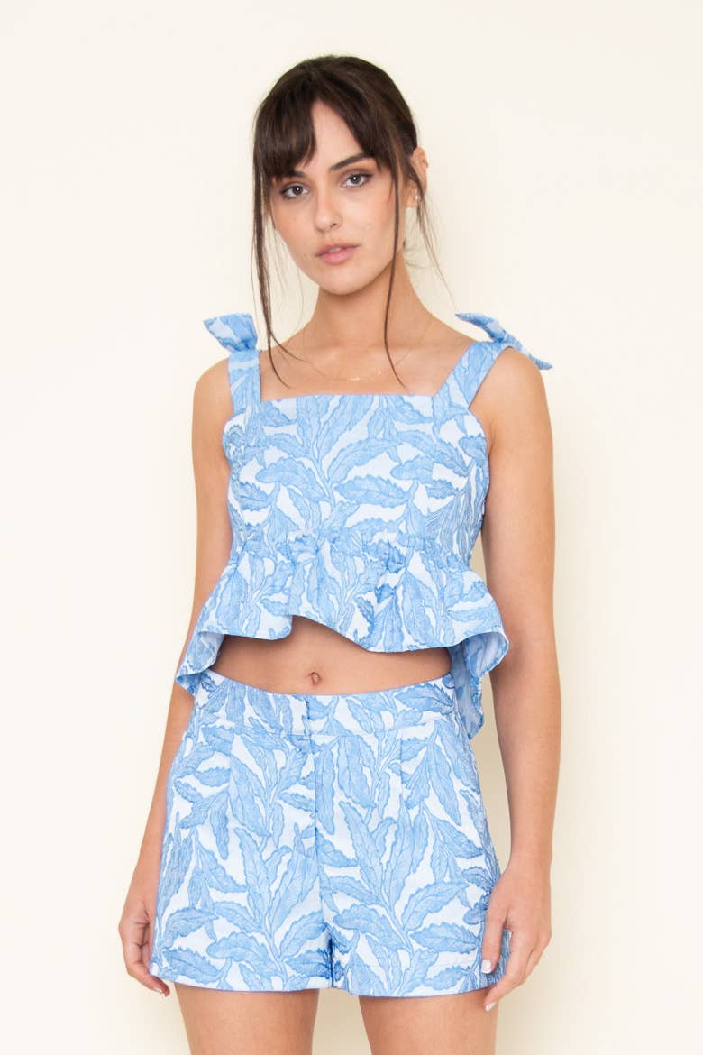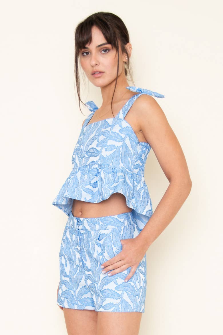 Floral Jacquard Shoulder Bow Top